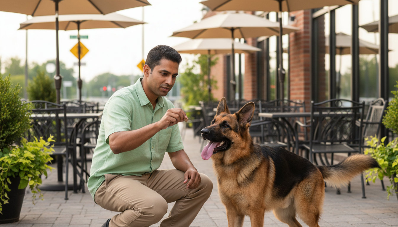 Basic obedience covers sit, down, stay, come, and loose-leash walking. These skills are the foundation for safe visits to the Accokeek Foundation grounds or a calm patio meal in National Harbor.