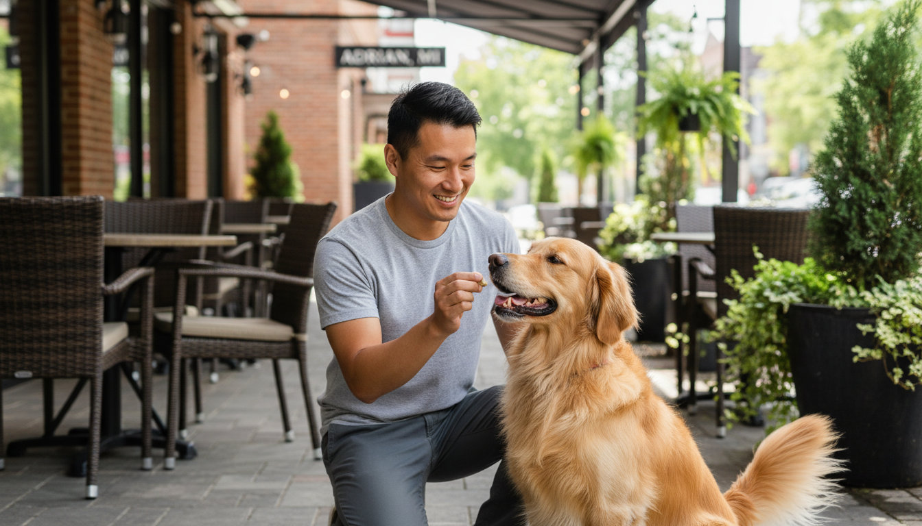 Life with a dog in Adrian offers quiet neighborhood walks, visits to local parks like Trestle Park, and community events downtown. For these outings to be enjoyable, your dog needs to listen around the historic district, walk politely on the Kiwanis Trail, and stay calm when visiting Riverside Park for a picnic.