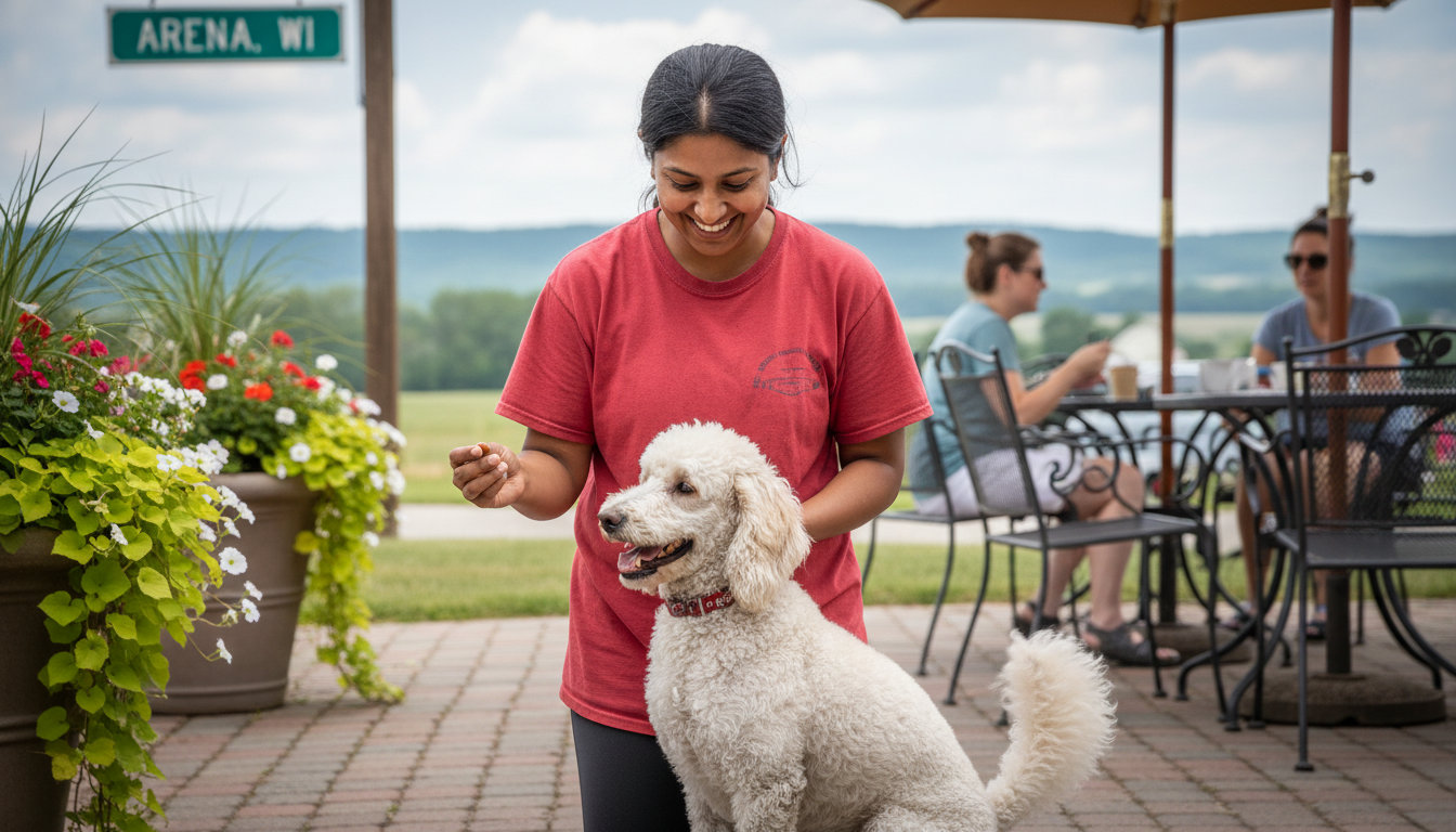 Finding the right dog trainer in Arena means preparing your dog for the quiet country roads, occasional busy days on Main Street, and outdoor adventures along the Lower Wisconsin State Riverway. Your dog needs reliable manners for peaceful coexistence in a rural community and the self-control to enjoy local natural areas safely.