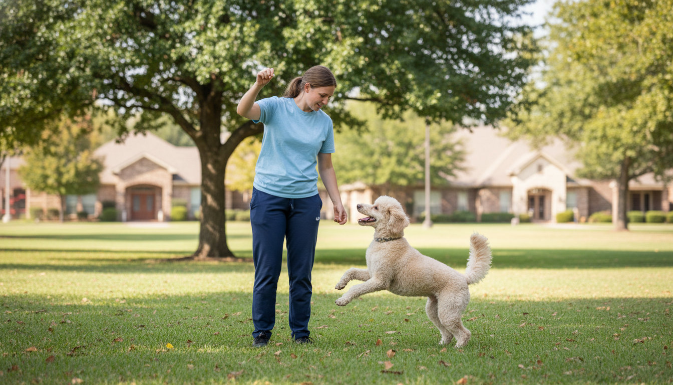 Basic obedience covers sit, stay, come, and loose-leash walking. These skills are essential for visits to the Argyle Town Center or walks on the Denton County trails.