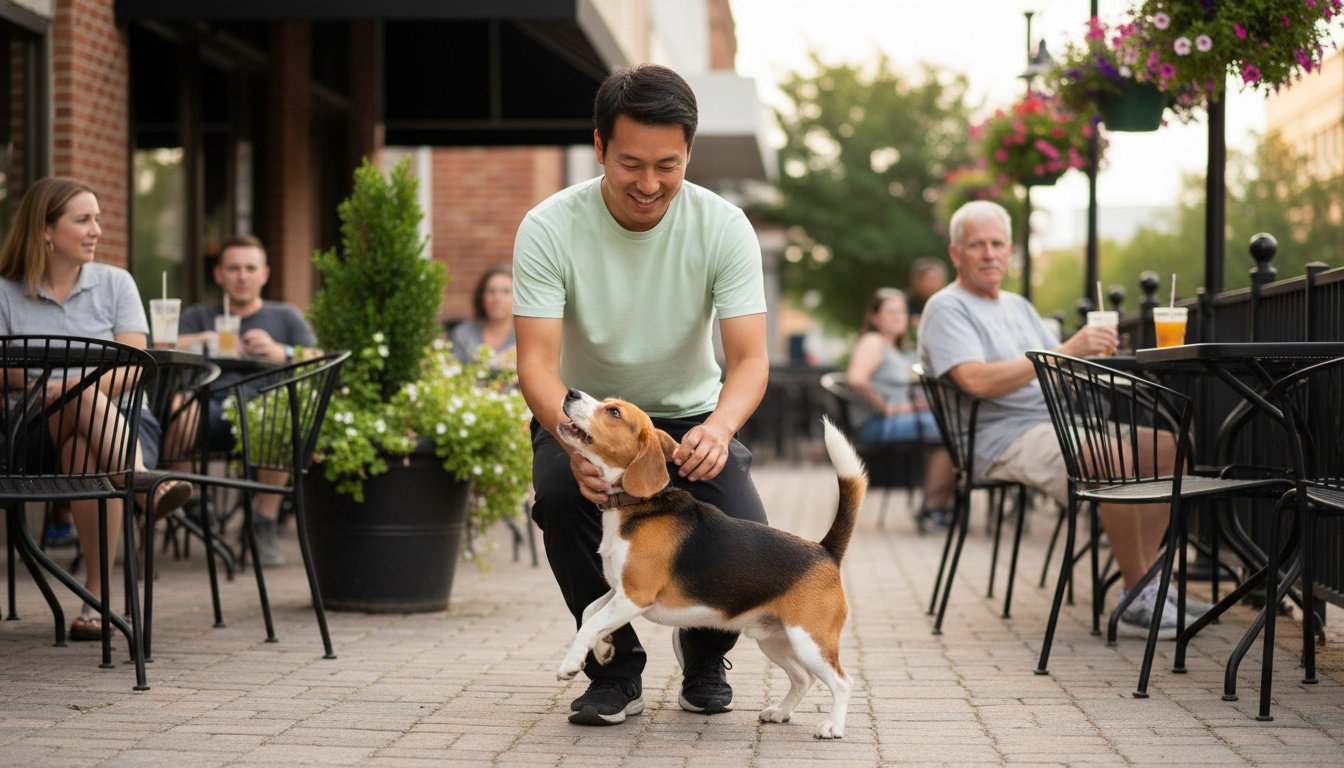 Basic obedience covers essential commands like sit, down, stay, come, and loose-leash walking. These skills are the foundation for calm visits to pet-friendly stores or outdoor dining areas.