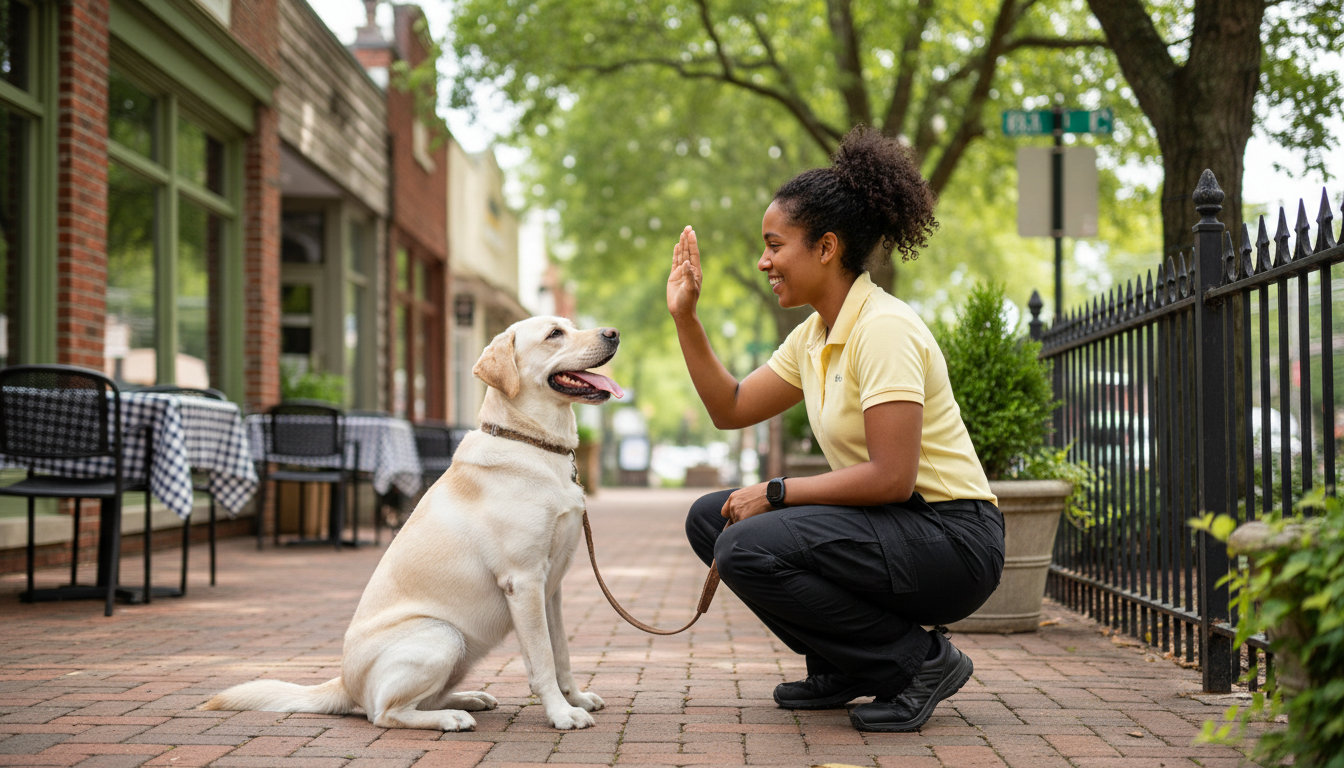 Modern dog training focuses on rewarding desired behaviors. This method is not only kind but also creates reliable results for everyday life in a small community.