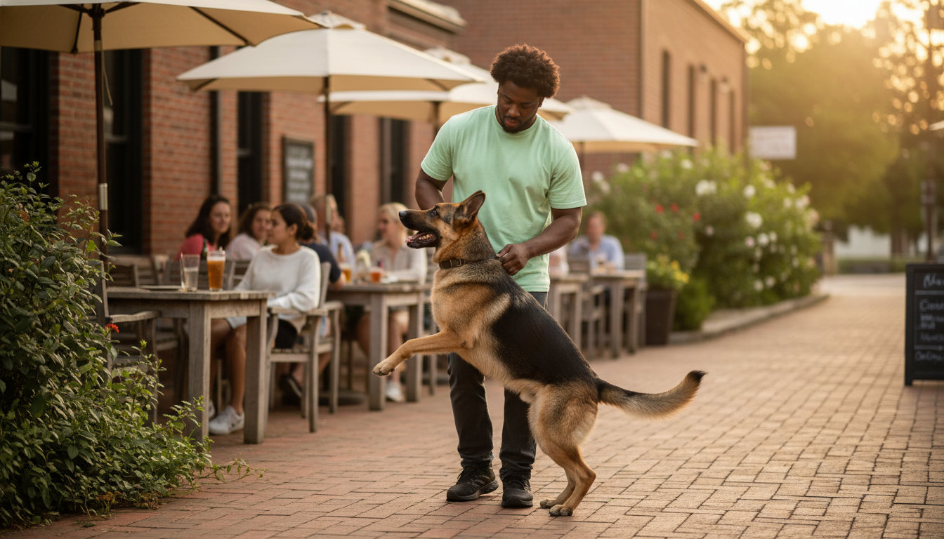 Basic obedience covers sit, down, stay, and a reliable recall. These are non-negotiable for safety near traffic and for enjoying outdoor dining.