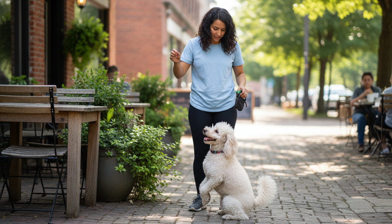 Basic obedience covers sit, down, stay, come, and loose-leash walking. These skills are the foundation for calm visits to places like the Brockport Farmers Market or a patio at a local restaurant.