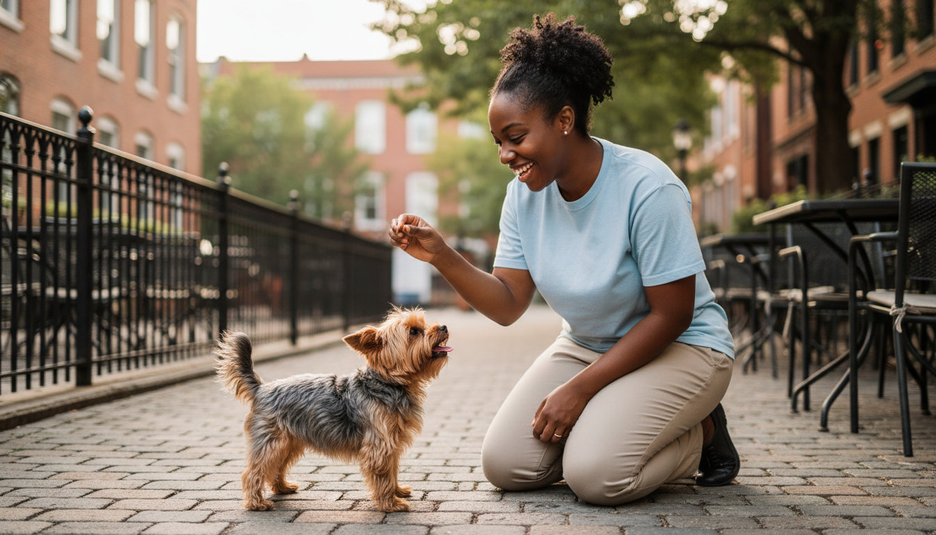 Basic obedience covers sit, down, stay, recall, and loose-leash walking. These skills are the foundation for safe visits to any public space in Cambridge.