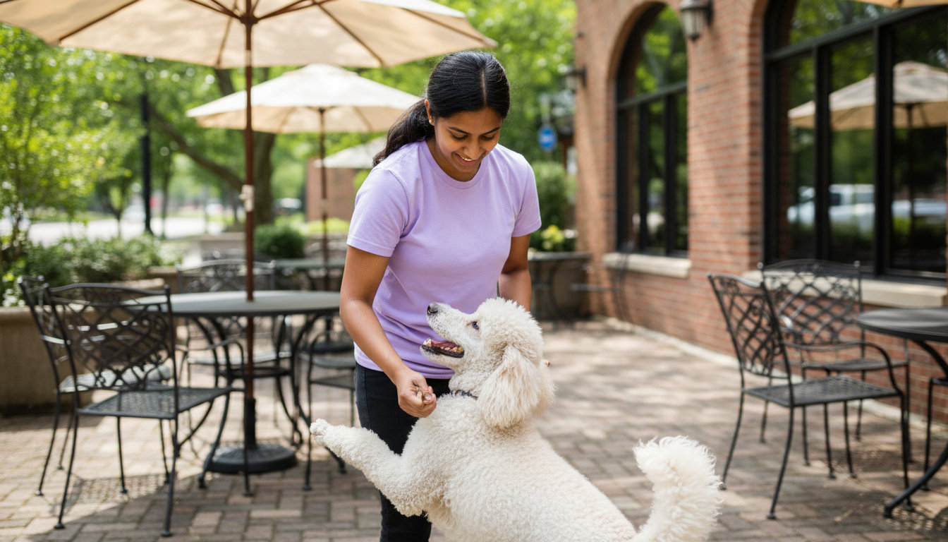 Basic obedience covers sit, down, stay, come, and loose-leash walking. These skills are the foundation for any outing, whether it’s to Diley Ridge Medical Center or a patio dinner.
