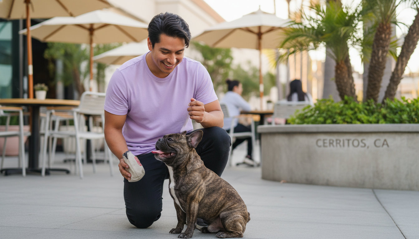 Basic obedience includes sit, down, stay, recall, and loose-leash walking. These are the foundation for any public outing in Cerritos, from a walk to the library to a patio meal.