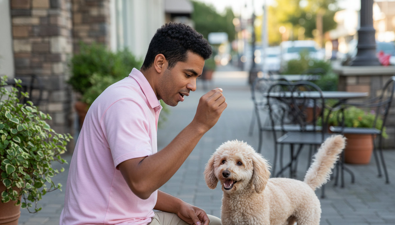 Basic obedience covers sit, down, stay, come, and loose-leash walking. These skills are essential for safe visits to Clayton’s parks and outdoor dining areas.