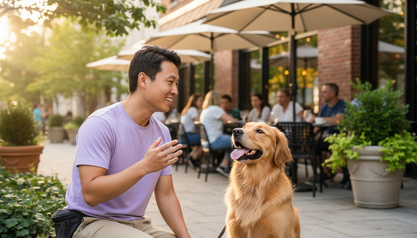 Basic obedience covers essential skills like sit, down, stay, recall, and loose-leash walking. These are the foundation for any public outing in town.
