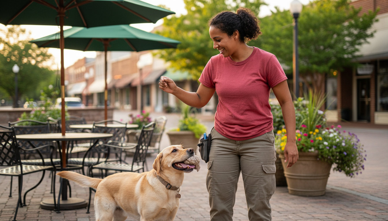 Basic obedience covers commands like sit, stay, come, and loose-leash walking. These are the foundation for safety and polite behavior during walks on the Dalton Greenway or visits to outdoor dining areas.
