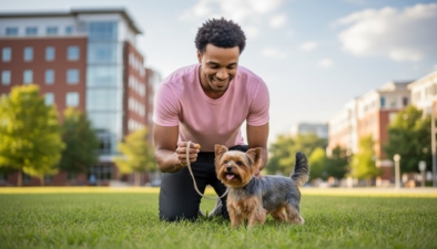 Look for a certified dog trainer who uses positive reinforcement methods. Their approach should help your dog learn to walk politely on a leash past bustling Broadway restaurants, remain calm when the Metro-North train rumbles by, and be a good neighbor in close-quarter living.