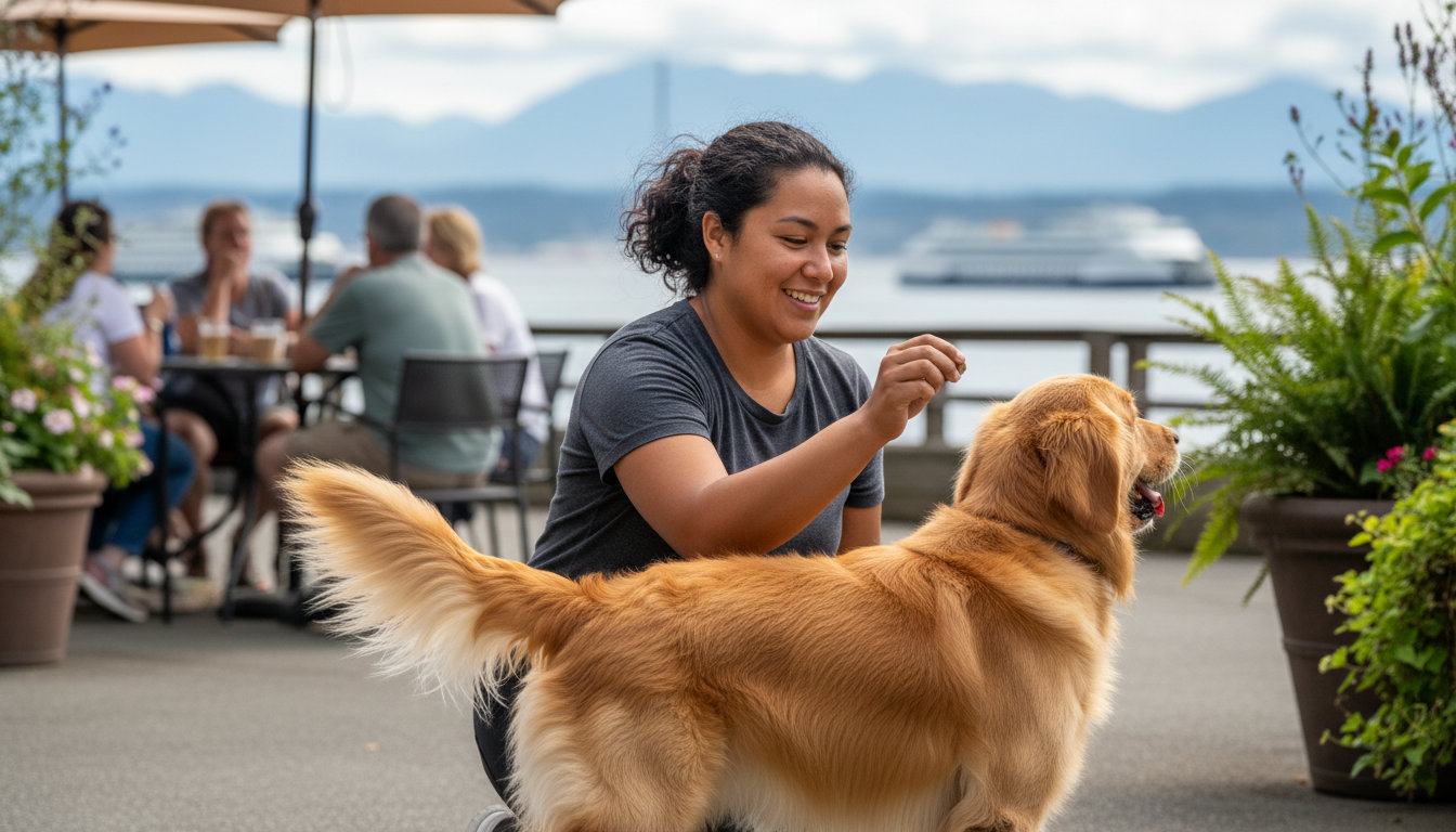 Basic obedience training**** covers essential skills like sit, down, stay, and a reliable recall. These are the foundation for any outing, whether you’re enjoying a coffee on a patio or hiking in the nearby Edmonds Forest Park.