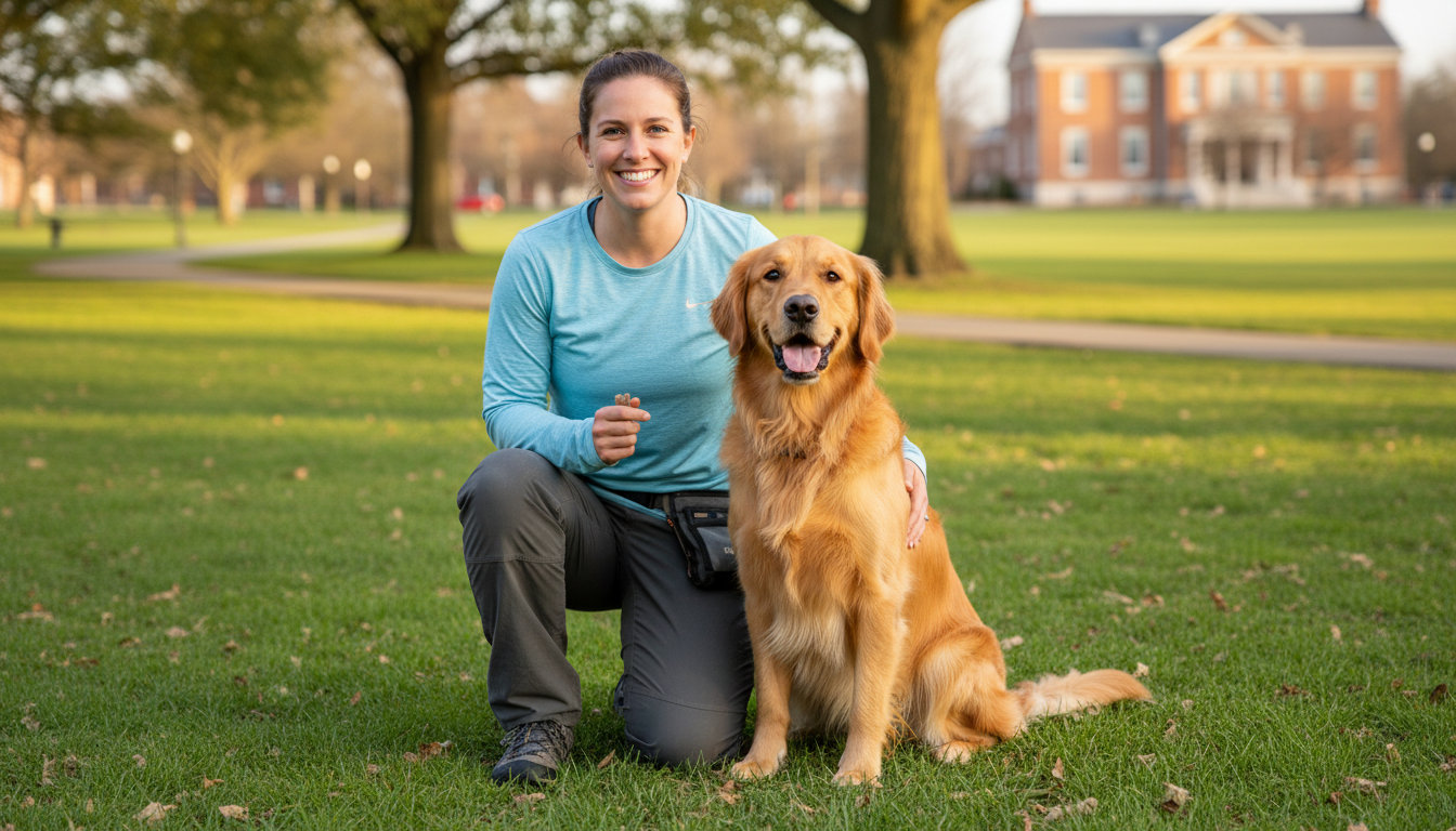 Basic obedience covers commands like sit, down, stay, and a reliable recall. These skills are the foundation for everything from greeting guests at your door to walking politely at the Bowie Park Arboretum.