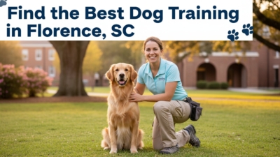 Look for a trainer who uses *positive reinforcement* training and can set realistic goals for life in the Pee Dee region. Your dog should learn to walk calmly on a leash in crowded areas like the Florence Farmers Market, stay focused near schools and parks, and be comfortable with vet visits.