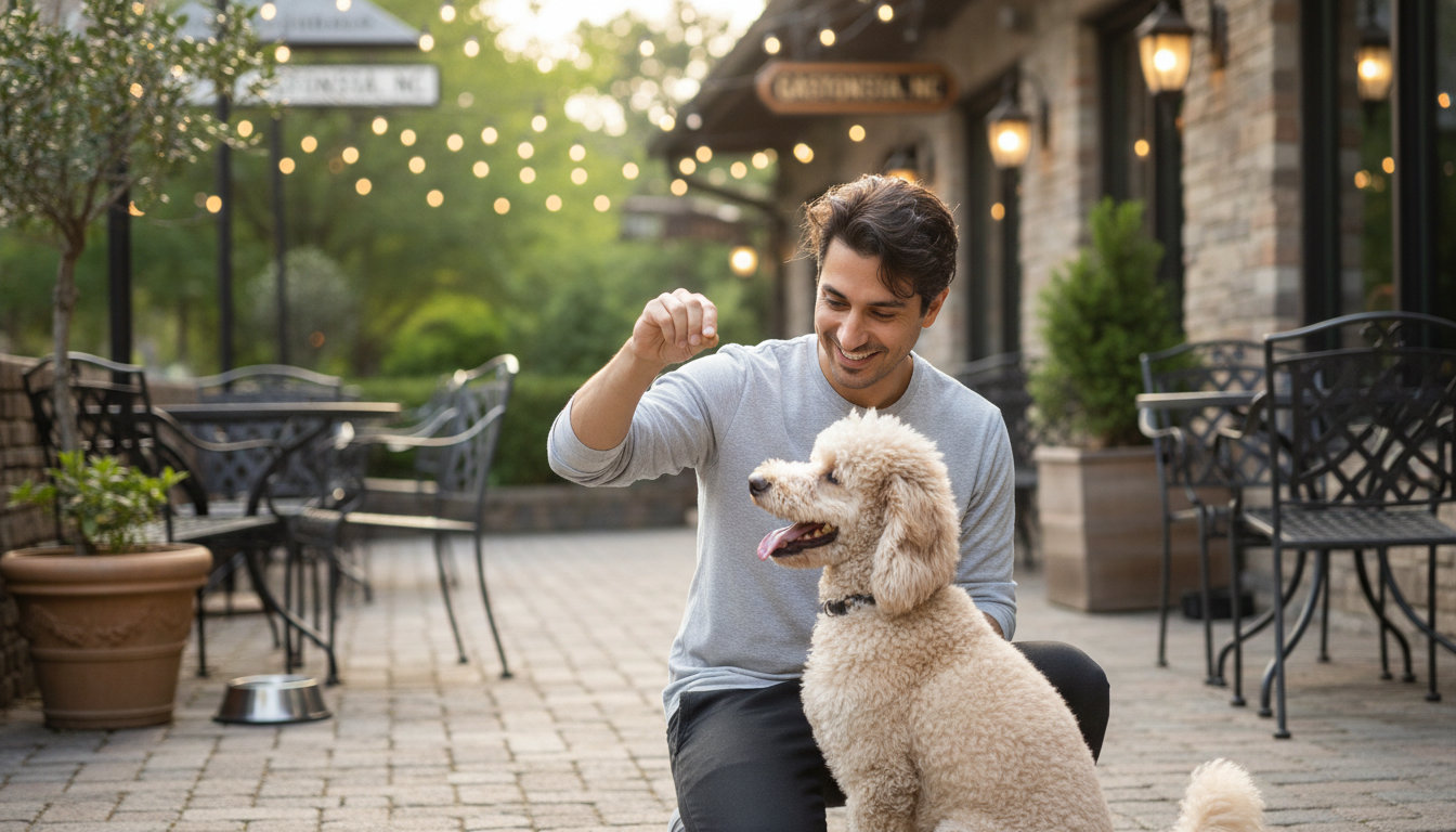 Basic obedience training**** covers essential cues like sit, down, stay, and a reliable recall. These are the foundation for any public outing, whether you’re at Lineberger Park or walking past restaurants on Main Avenue.