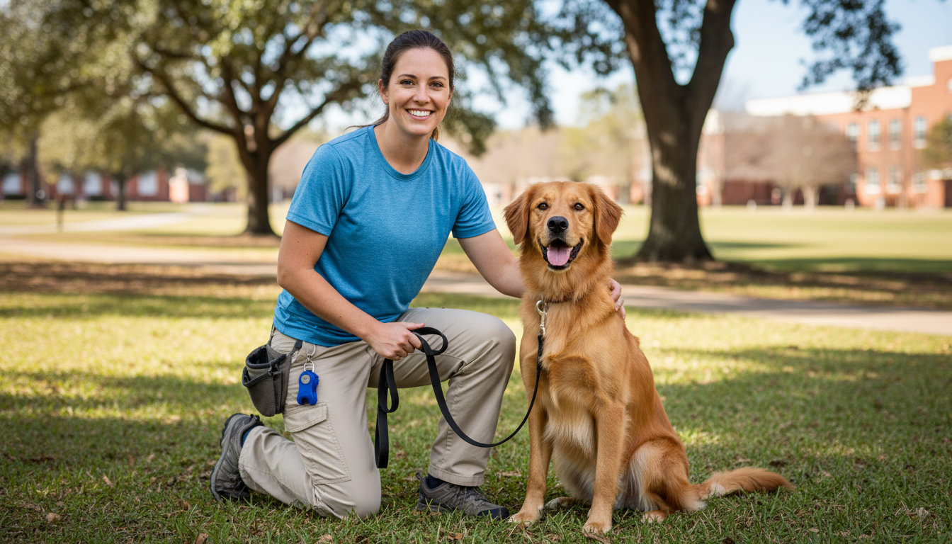 Look for a professional dog trainer who uses positive reinforcement methods. They should help you set goals for a peaceful home and successful outings to local spots like the Getzville Fire Company events or the Amherst bike path.