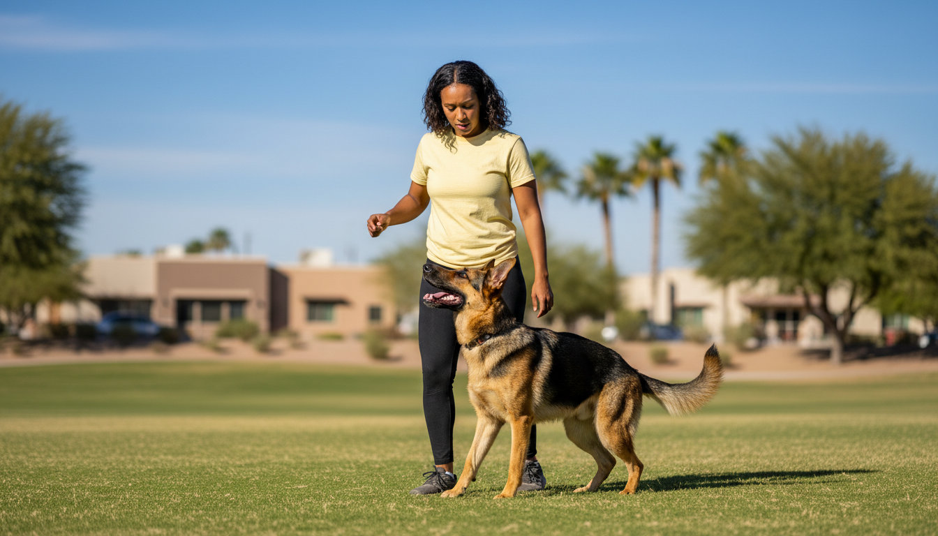 Start by looking for a professional dog trainer who uses *positive reinforcement* training methods. This approach builds trust and helps your dog learn to behave well in busy places like the Goodyear Community Park or the shopping centers along McDowell Road.