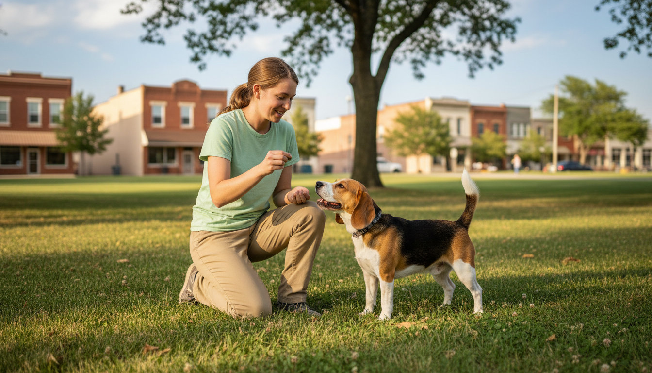 Look for a trainer who uses positive reinforcement methods and can set goals for your specific lifestyle. This could mean teaching your dog to ignore deer in the yard, walk politely on a leash past farm animals, or stay calm during visits to more populated areas like Taylorsville.