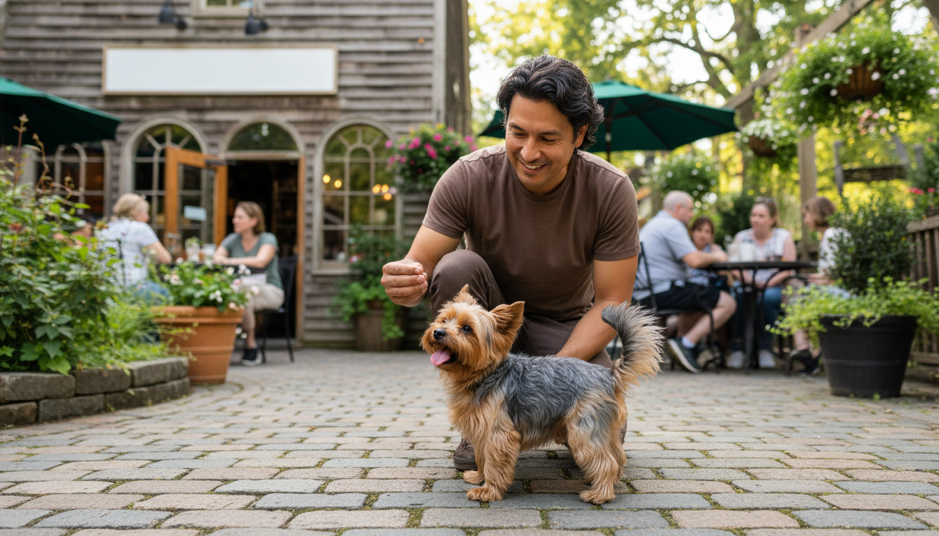 Basic obedience covers essential commands like sit, stay, come, and loose-leash walking. These skills are the foundation for safe visits to any public space.
