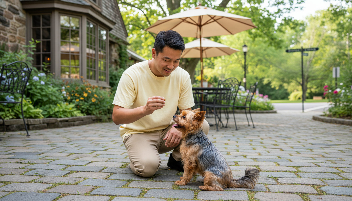 Look for a dog trainer who uses *positive reinforcement* training and understands the local environment. They should help you set goals for walking on country roads, having reliable recall in open spaces, and keeping your dog calm during loud events that might happen in the region.