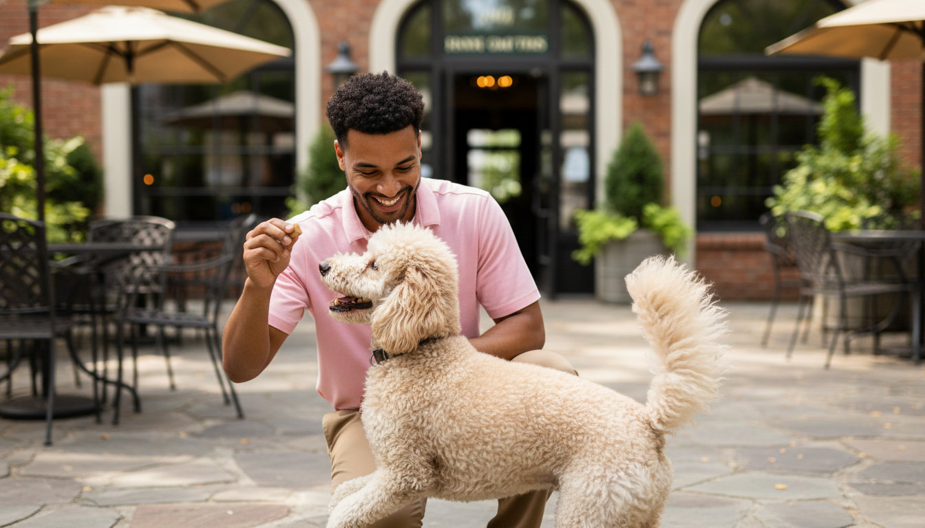 Basic obedience covers sit, down, stay, recall, and loose-leash walking. These skills are the foundation for a safe and enjoyable experience at any La Crosse park or outdoor patio.