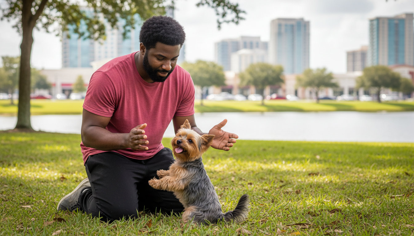 Basic obedience covers sit, down, stay, come, and loose-leash walking. These skills are the foundation for safety and good manners everywhere.