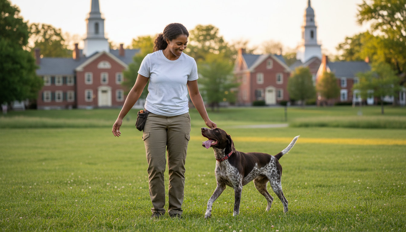 Start by seeking a professional dog trainer who uses *positive reinforcement* training methods. This approach builds trust and is effective for teaching dogs to remain calm amid Lexington’s frequent community events and pedestrian traffic. Look for someone who can set realistic goals for local living, such as loose-leash walking on the Minuteman Bikeway or settling quietly in a cafe patio in East Lexington.