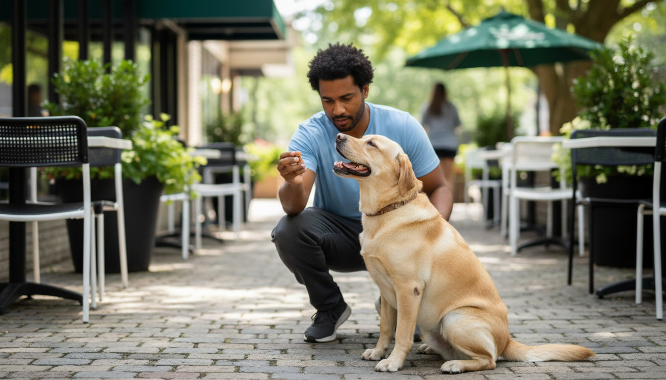 Basic obedience covers essential cues like sit, down, stay, recall, and loose-leash walking. These skills are vital for safe walks on the Discovery Trail and calm visits to shops along Pacific Avenue.