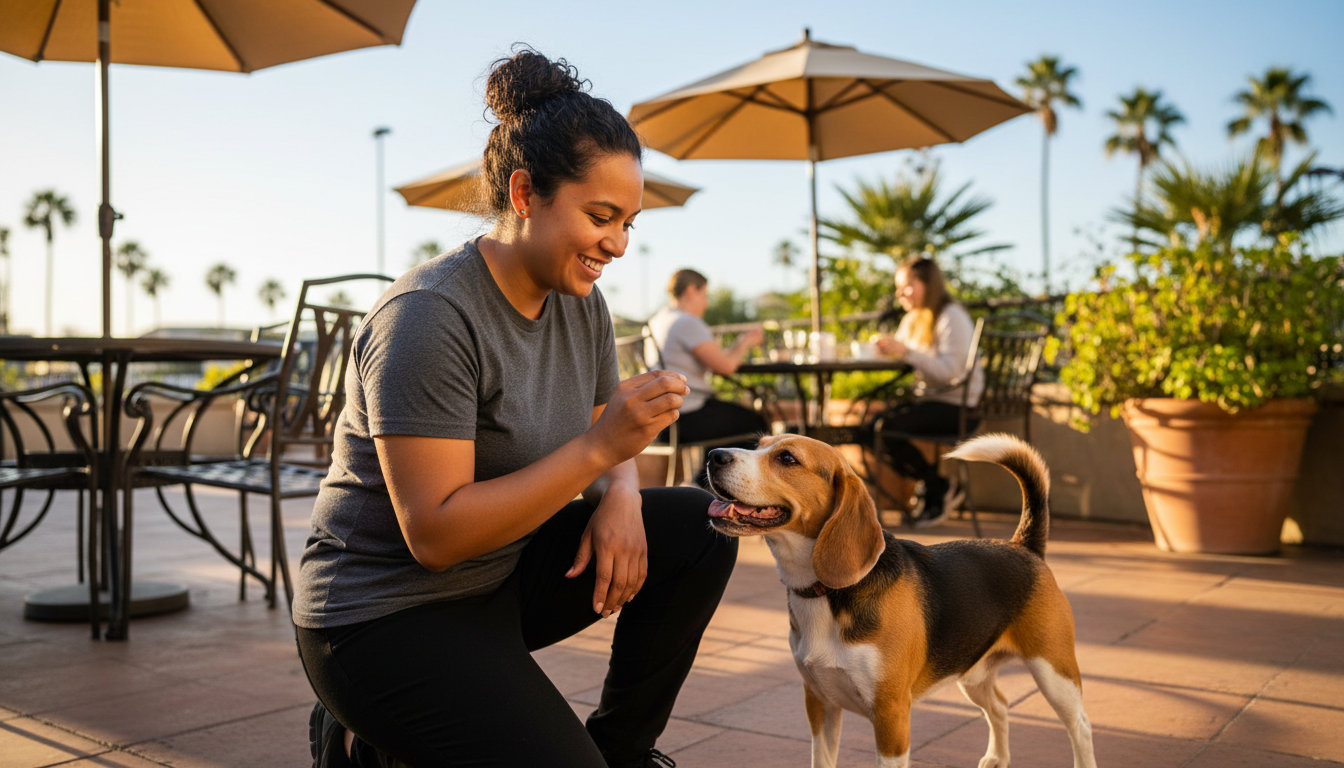 A solid foundation in basic obedience includes skills like sit, down, stay, and a reliable recall. These commands are essential for safety during walks on the Pacific Electric Trail or visits to dog-friendly patio areas.