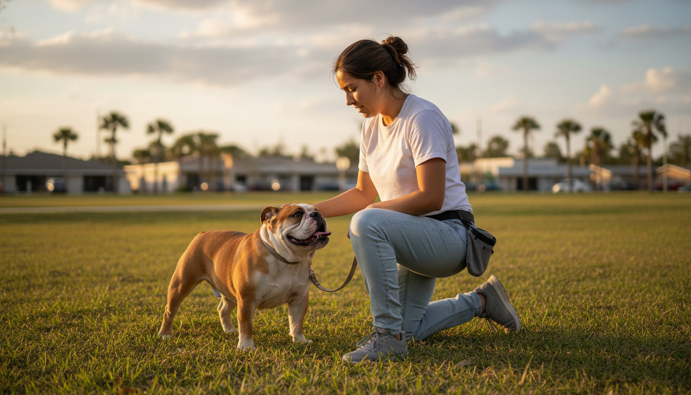 Basic obedience covers sit, down, stay, come, and loose-leash walking. These are the foundation for visits to Fred Gannon Park or a calm patio meal in downtown Niceville.