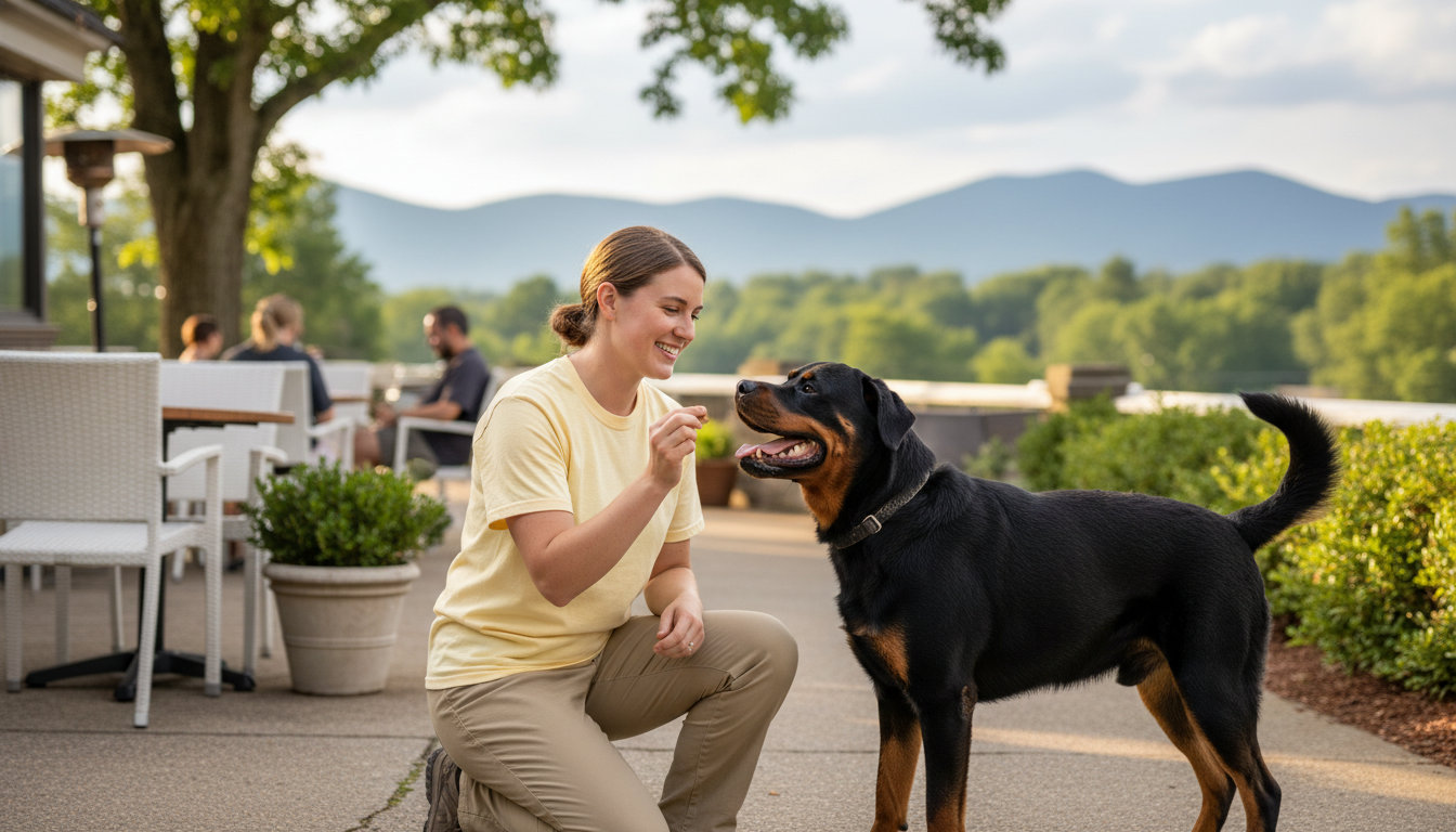 Look for a professional dog trainer who uses humane, science-based methods like *positive reinforcement* training. Your dog should learn to navigate NKC’s unique environment, from walking calmly on a leash past the busy North Kansas City Hospital to settling down at an outdoor table on Armour Road.