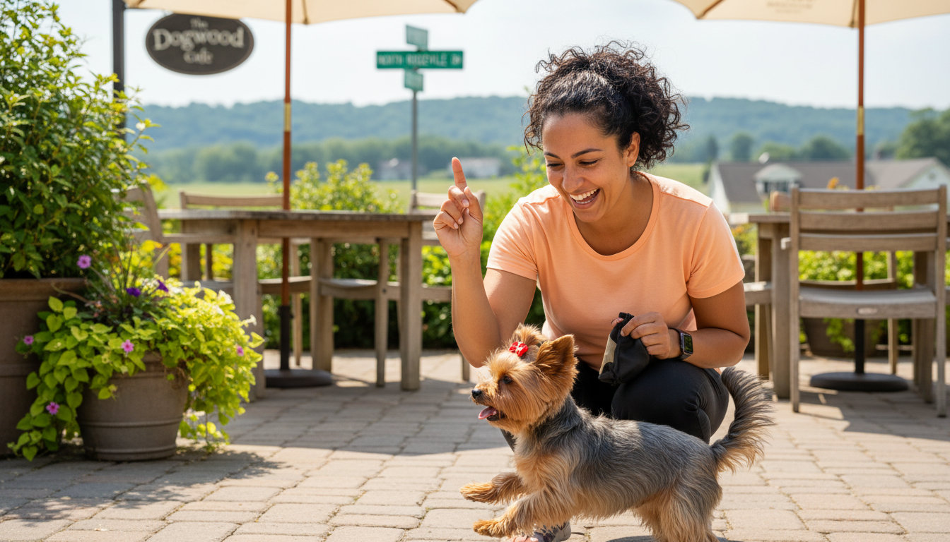 Basic obedience covers sit, down, stay, come, and loose-leash walking. These skills are the foundation for any outing in North Ridgeville, from a walk to the park to a patio visit.