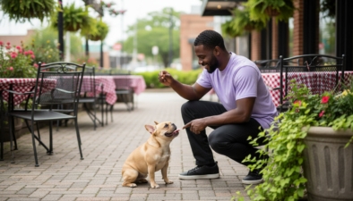 Look for a trainer whose methods are based on positive reinforcement and clear communication. They should help you set goals that make sense for life here, like having a dog that doesn’t bark excessively in your backyard, walks nicely on the city’s sidewalks, and remains calm during vet visits at a local animal hospital.