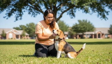 Basic obedience training**** covers essential cues like sit, down, stay, and a solid recall. These skills form the foundation for polite behavior during walks around Maxwell Field or visits to local events.