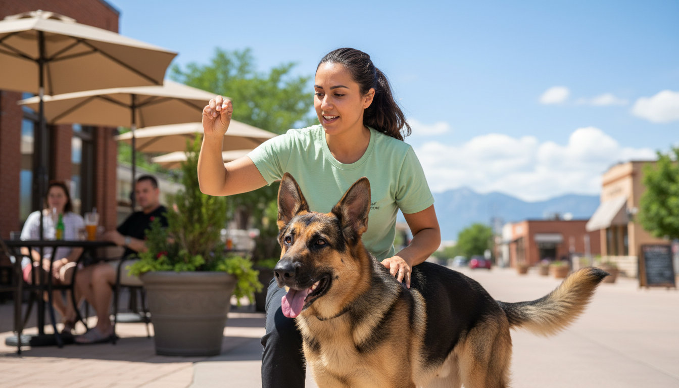 Look for a trainer who uses modern, positive reinforcement methods. They should help you set goals that fit a Parker lifestyle, like having a dog that heels calmly on Mainstreet sidewalks, doesn’t react to passing horses on rural trails, and can settle during a patio meal.