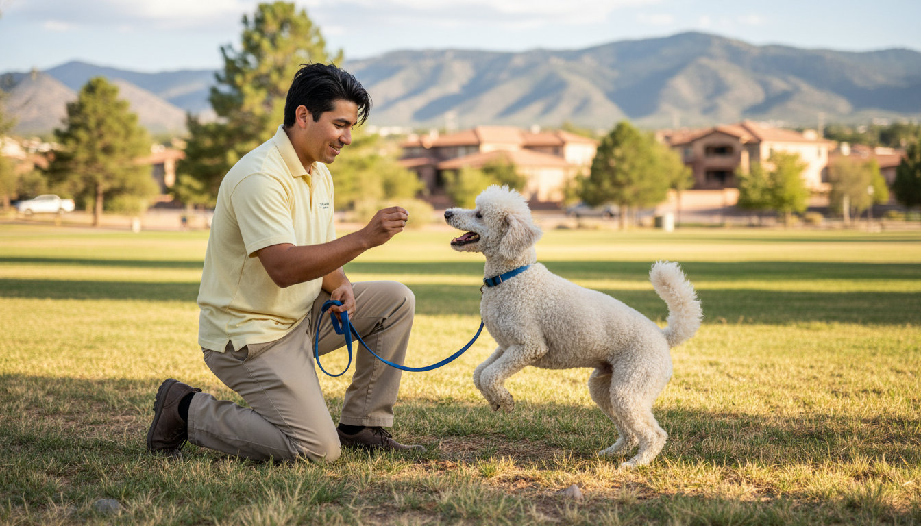 Basic obedience covers skills like sit, down, stay, recall, and loose-leash walking. These are essential for safe visits to the Payson Dog Park or a calm patio lunch in town.