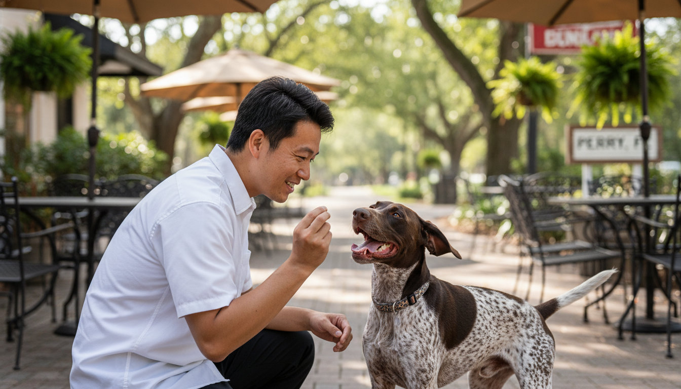 Look for a trainer who uses *positive reinforcement* training and creates a practical plan for your life in Perry. This means your dog learns to be calm during walks on city sidewalks, polite when meeting people, and settled when home alone.