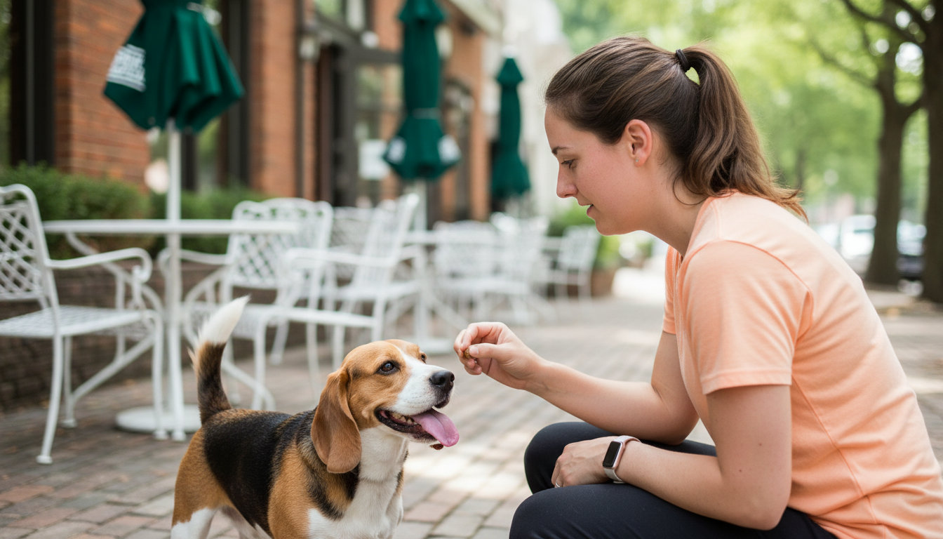Basic obedience covers sit, down, stay, come, and loose-leash walking. These are the foundation for any public outing, whether you’re at a Petersburg Farmers Market or walking on the Appomattox River Trail.