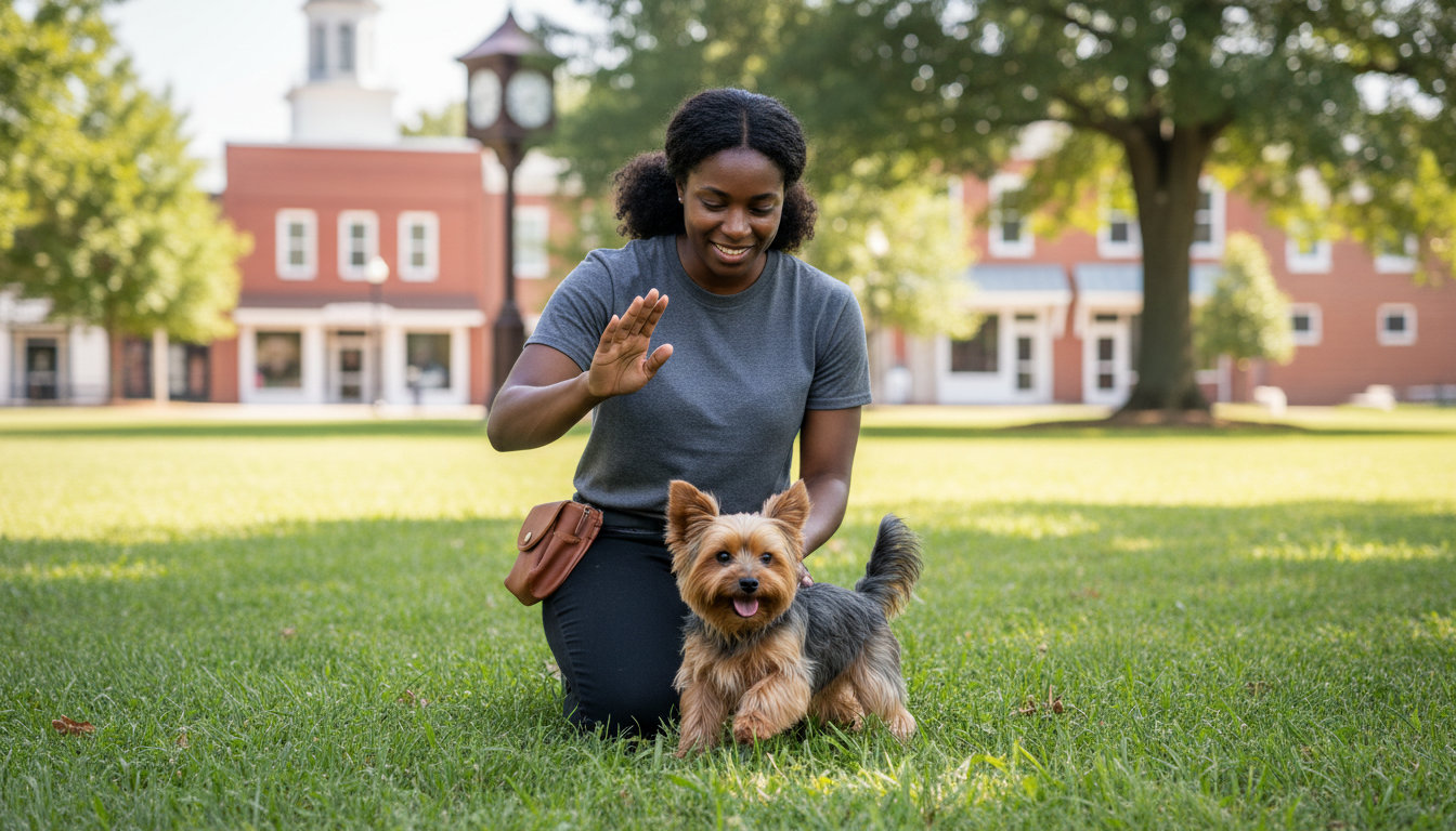 Living with a dog in Powhatan County means enjoying quiet country roads, open fields, and a close-knit community feel. Your dog needs to be a good neighbor, respecting livestock, staying safe around rural traffic, and behaving politely during visits to local spots like the Powhatan Courthouse Square or the Village Market. Finding a dog trainer who understands this unique setting is key to helping your dog thrive in both your home and the wider community.