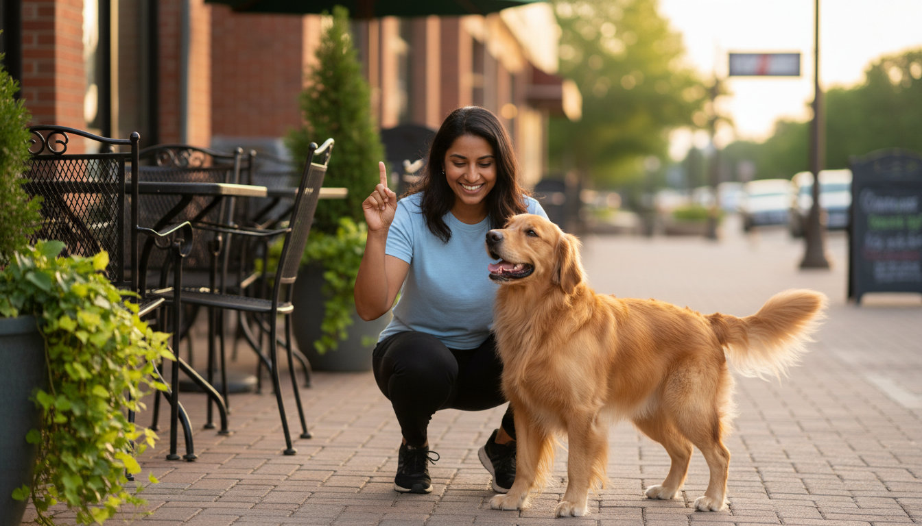 Basic obedience covers sit, down, stay, come, and loose-leash walking. These skills are the foundation for visiting any dog-friendly location safely.