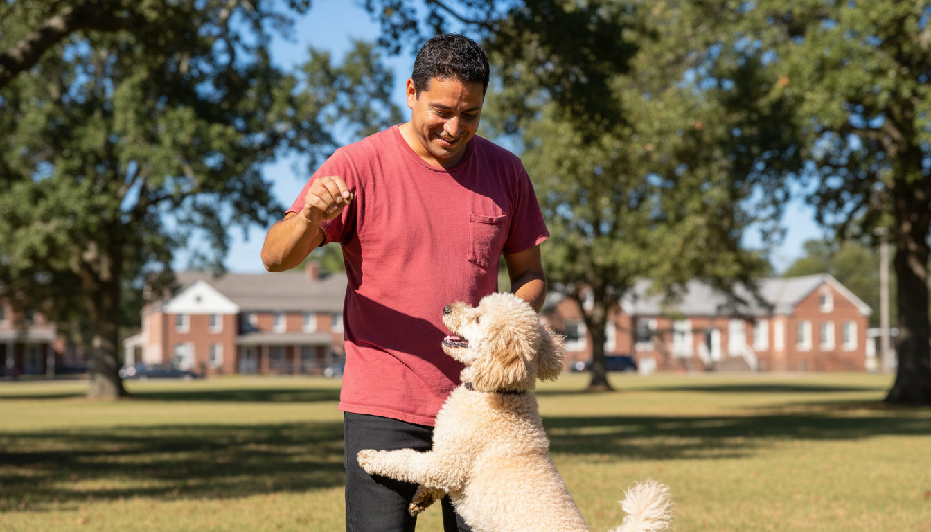 Life with a dog in Snow Camp offers peaceful rural lanes, access to beautiful county parks, and a quiet community atmosphere. Your dog still needs to learn good manners for visits to nearby towns like Burlington or Graham, behave around livestock or wildlife, and be a calm companion on leashed walks. Finding a professional dog trainer who understands this mix of country living and suburban excursions makes all the difference.