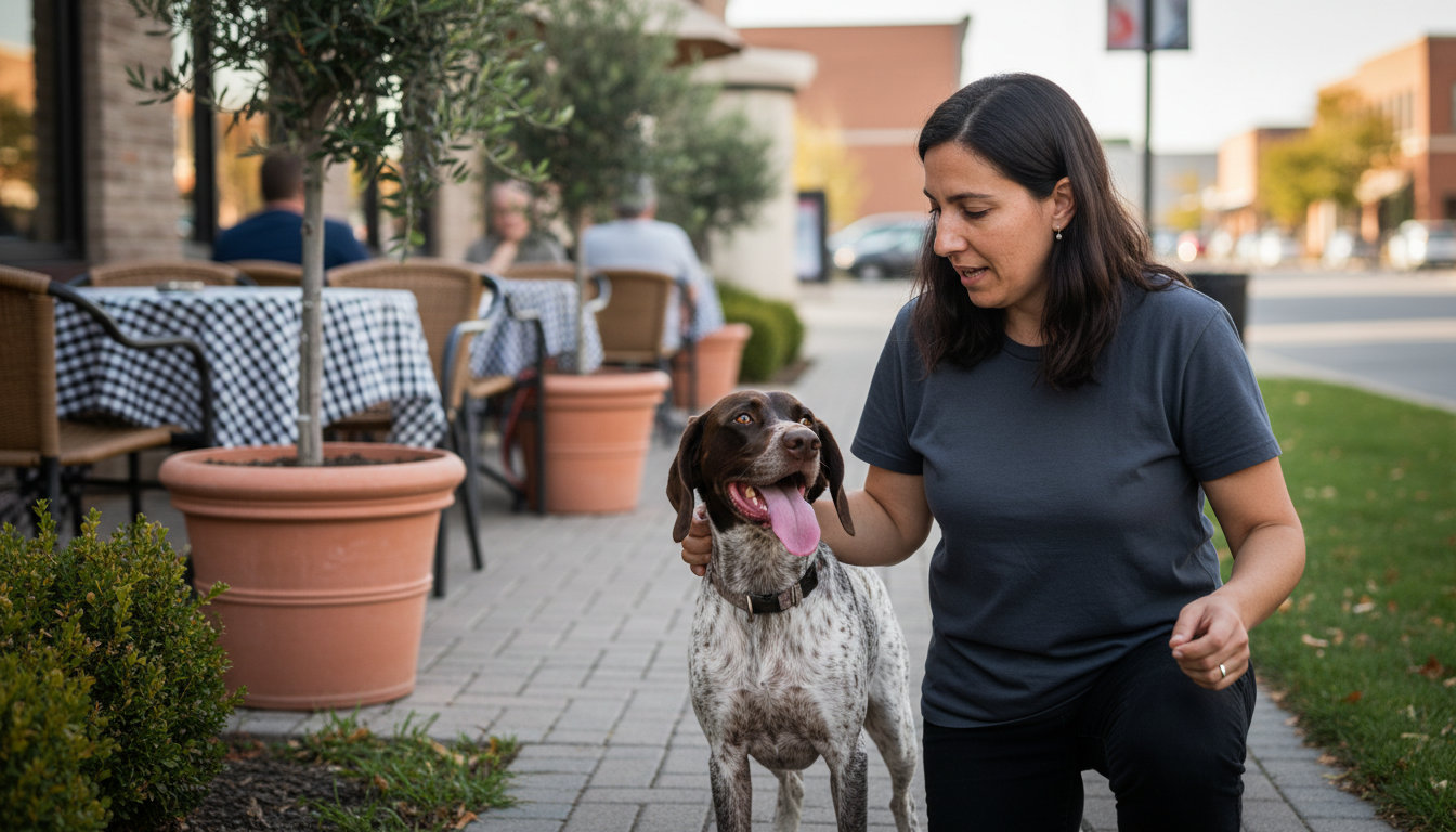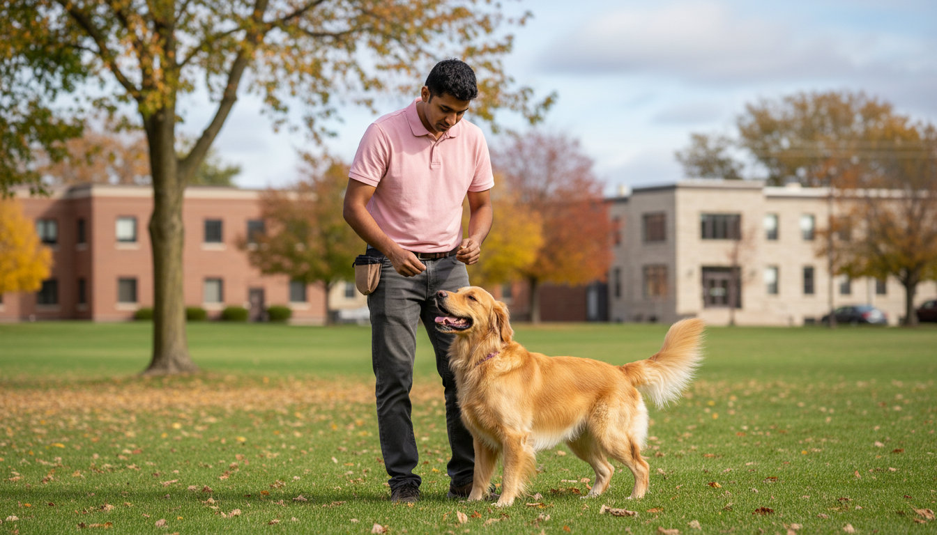 Basic obedience training**** covers essential skills like sit, down, stay, and a reliable recall. These commands are the foundation for safety and good manners during walks in your neighborhood or visits to local business districts.