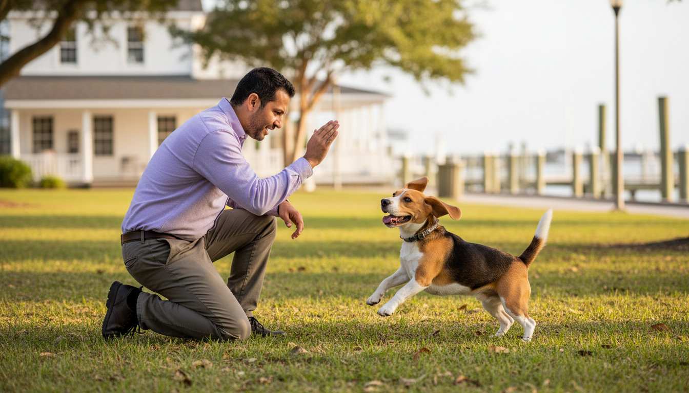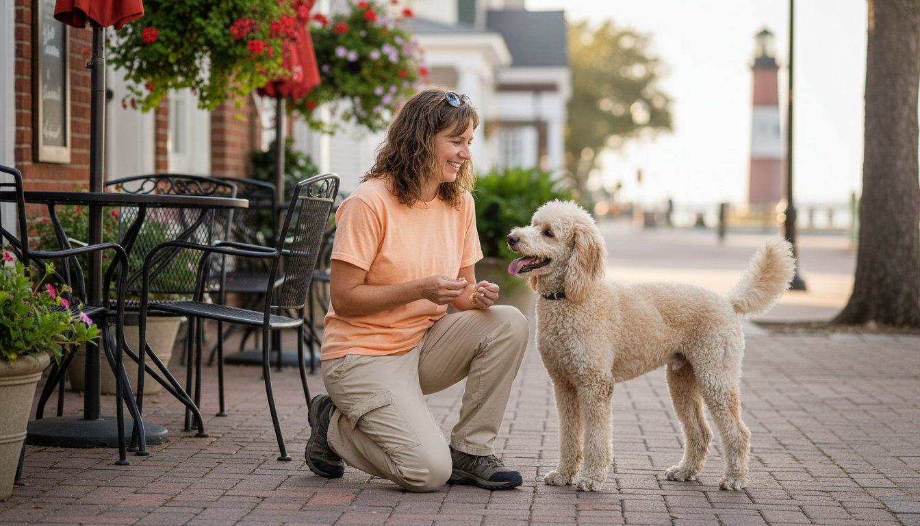 Life with a dog in Southport means navigating scenic waterfronts, historic downtown sidewalks, and potentially busy summer crowds. Your dog should be able to handle a calm stroll past the Old Brunswick County Jail, sit politely at a restaurant on Howe Street, and ignore distractions along the Riverwalk. Finding a local professional who understands this unique coastal environment is key to a happy, well-behaved companion.
