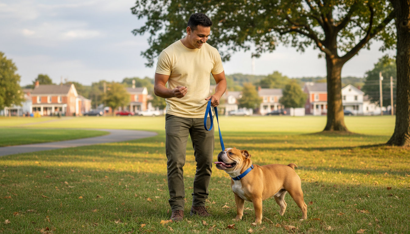 Bring a standard 6-foot leash, a well-fitting collar or harness, high-value treats, and your dog’s vaccination records if required by the training facility. Leave retractable leashes at home.