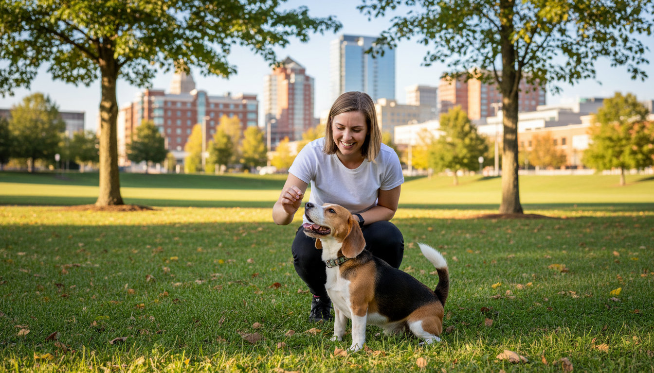 In-home sessions are excellent for addressing specific issues like door-dashing, counter-surfing, or reactivity in your own yard. Group classes provide a controlled setting to practice obedience around other dogs, which is great preparation for a visit to the Market Common.