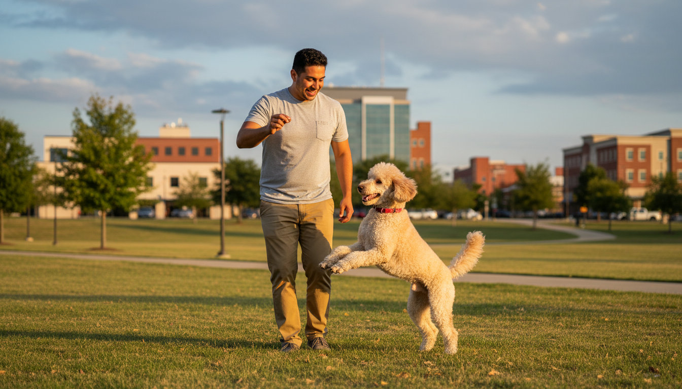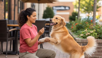 Puppy training emphasizes early socialization, potty training, and bite inhibition. Starting early prevents future problems and sets your puppy up for a confident life in a community that values its pet-friendly events.