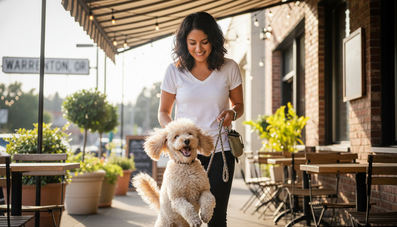Basic obedience covers skills like sit, down, stay, come, and loose-leash walking. These are the foundation for any outing, whether you’re at the Washougal Town Center or on a trail.