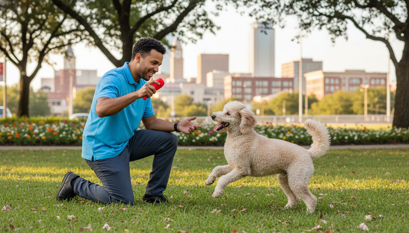 Basic obedience covers essential commands like sit, stay, come, and loose-leash walking. These skills are the foundation for any outing in Webster, whether you’re at a park or a patio restaurant.