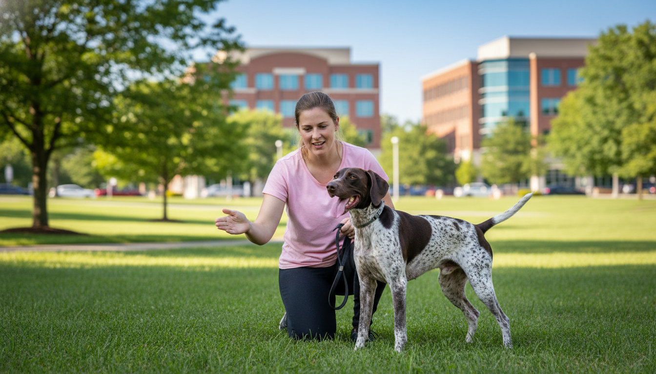 Start by looking for a certified dog trainer who uses *positive reinforcement* training. This method builds trust and ensures long-lasting results, which is essential for managing your dog around Whitehall’s many distractions. The right training program will focus on creating a well-behaved dog that can handle visits to the Lehigh Valley Mall plaza, stay focused during walks in Hokendauqua Park, and remain calm during home deliveries.