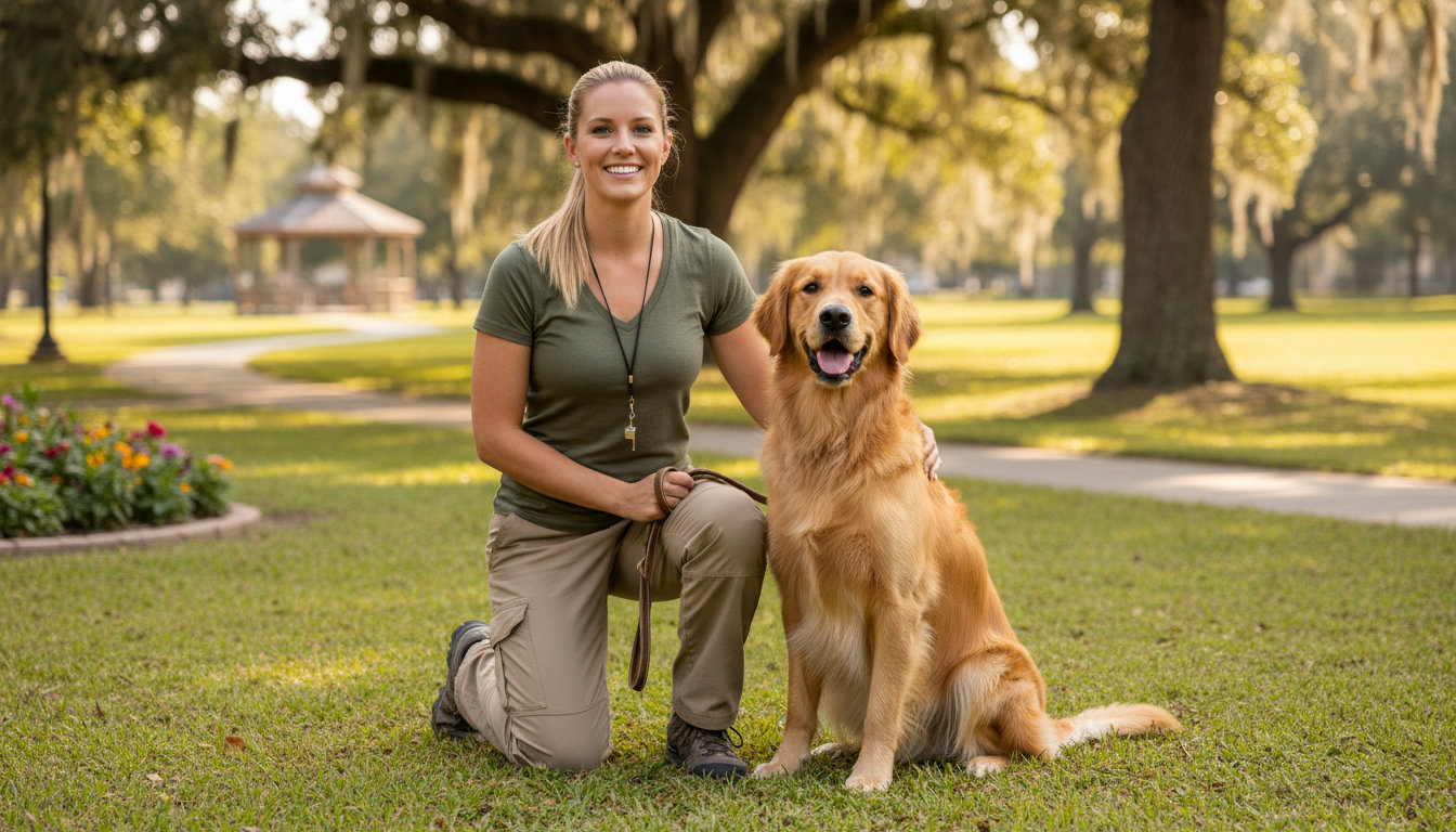 Basic obedience training**** covers essential cues like sit, down, stay, and a reliable recall. These skills are the foundation for safety during walks on the River Walk and polite behavior in public spaces.